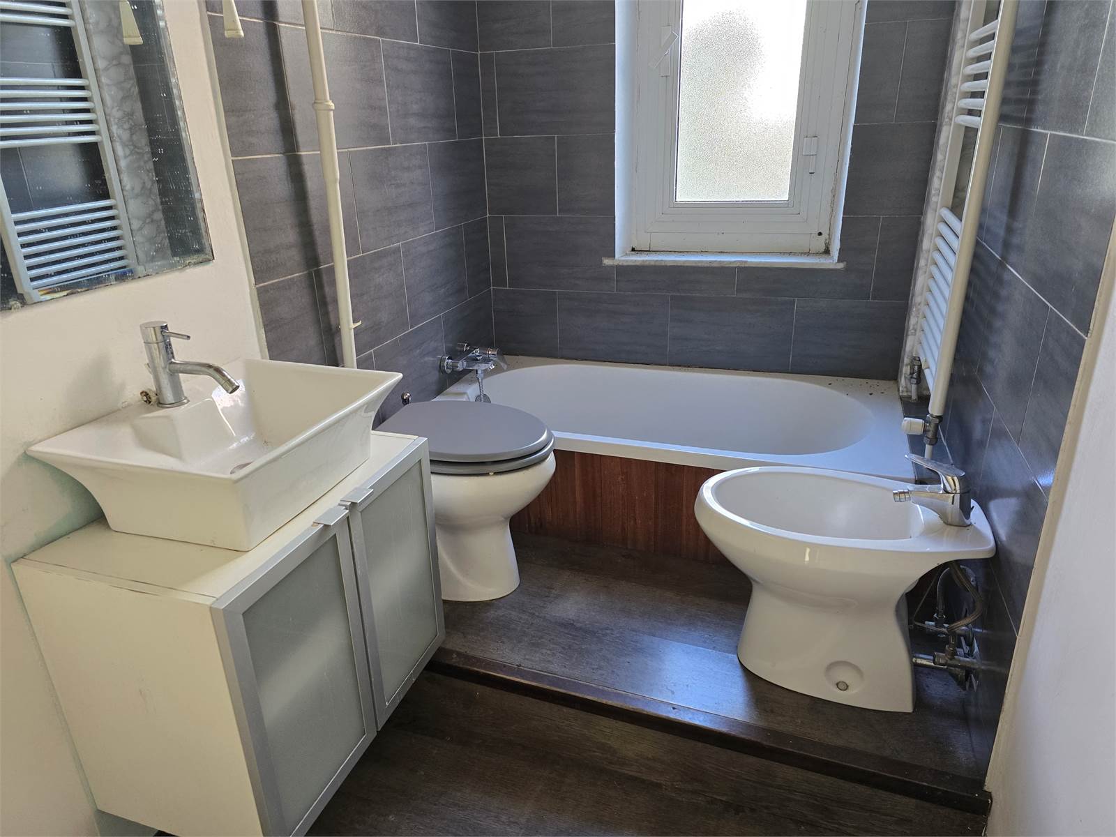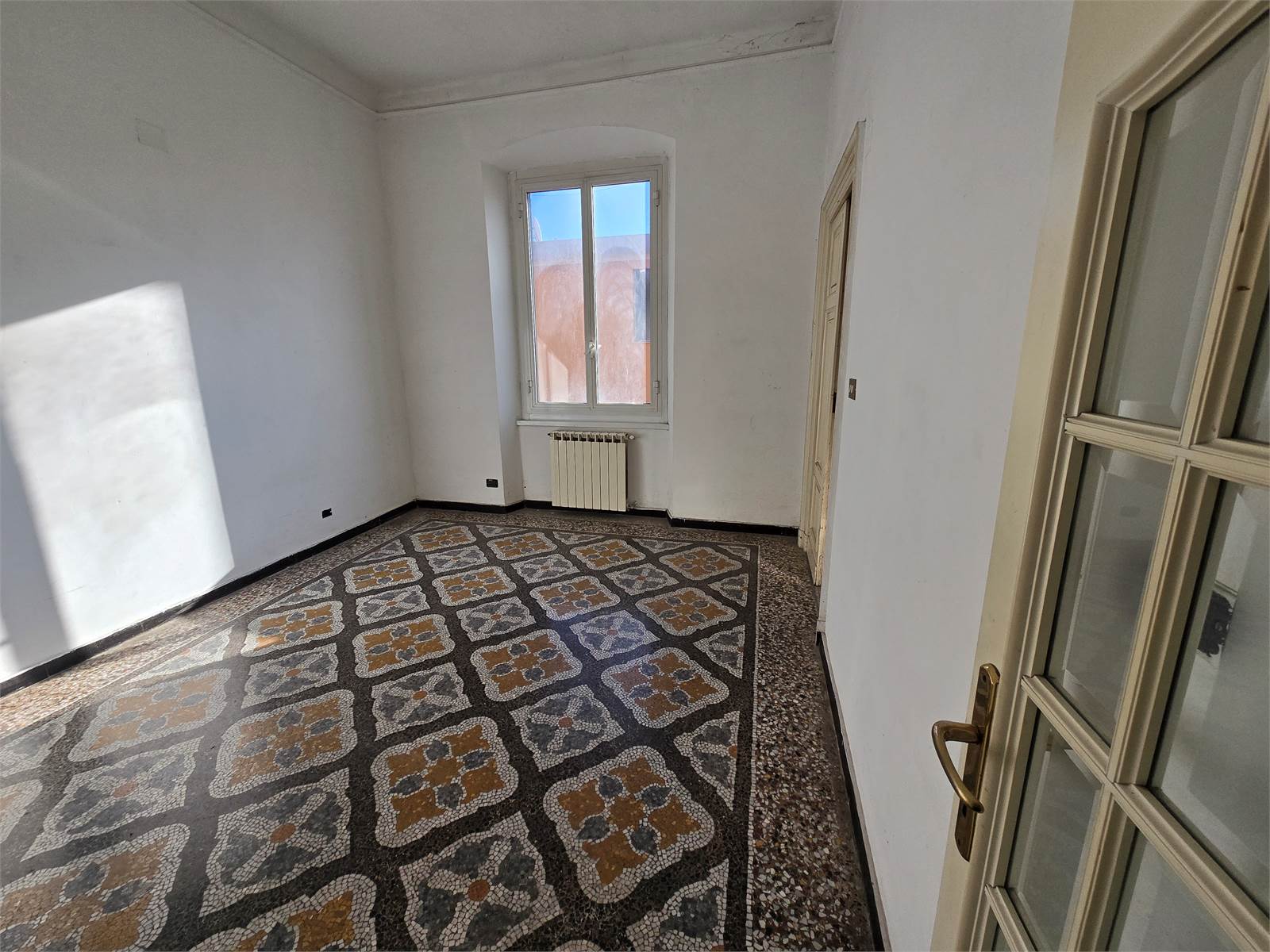 BOLZANETO - Salita Murta - In piccolo caseggiato di tre piani, raggiungibile tramite stradina pedonale a circa a 20 m dalla strada principale (via A. M. Mazzini), vendiamo soleggiati 112 mq con doppio ingresso, posti al primo piano e composti da: ingresso, salone, due camere, cucina abitabile con balcone, e bagno finestrato.