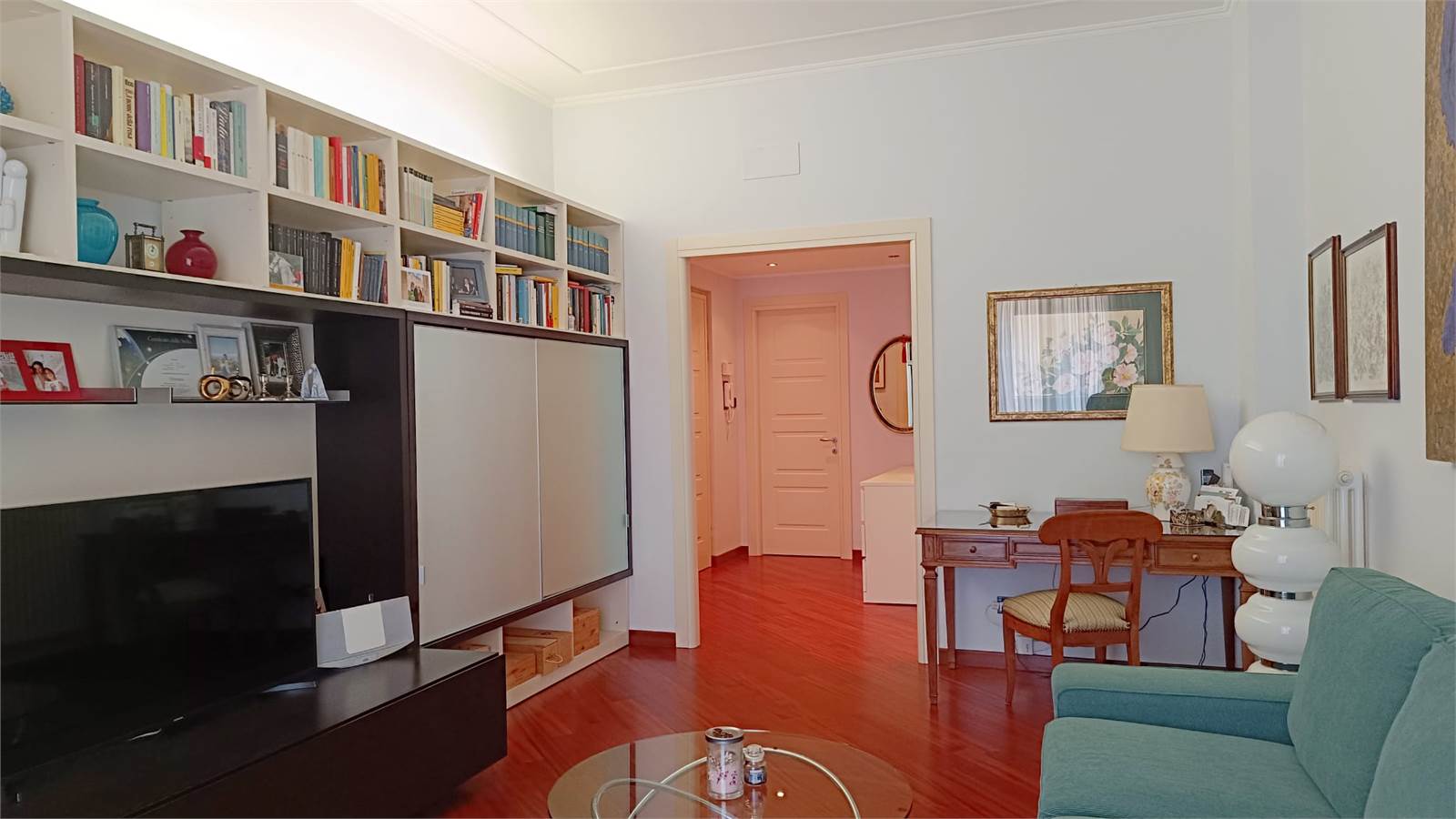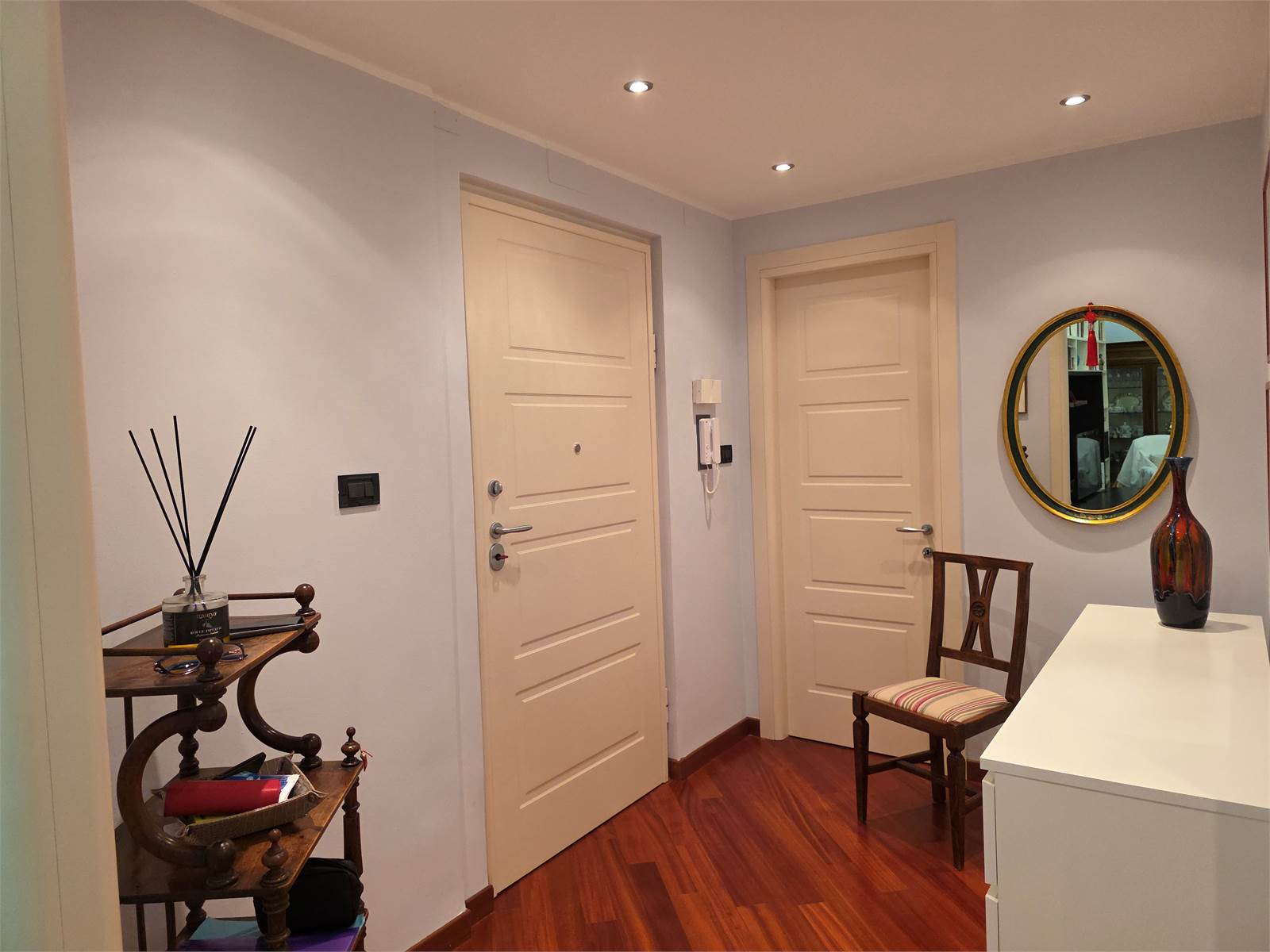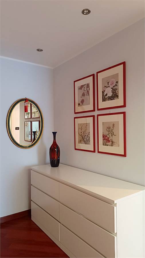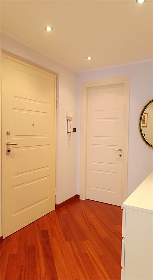 L'immobile è stato completamente ristrutturato ed è dotato di: porta blindata, finestre doppio vetro, parquet continuo in tutta la casa (ad esclusione di bagno e cucina), aria condizionata, porte nuove, controsoffitti con faretti, tende da sole, eventuale mobilio cucina su misura.