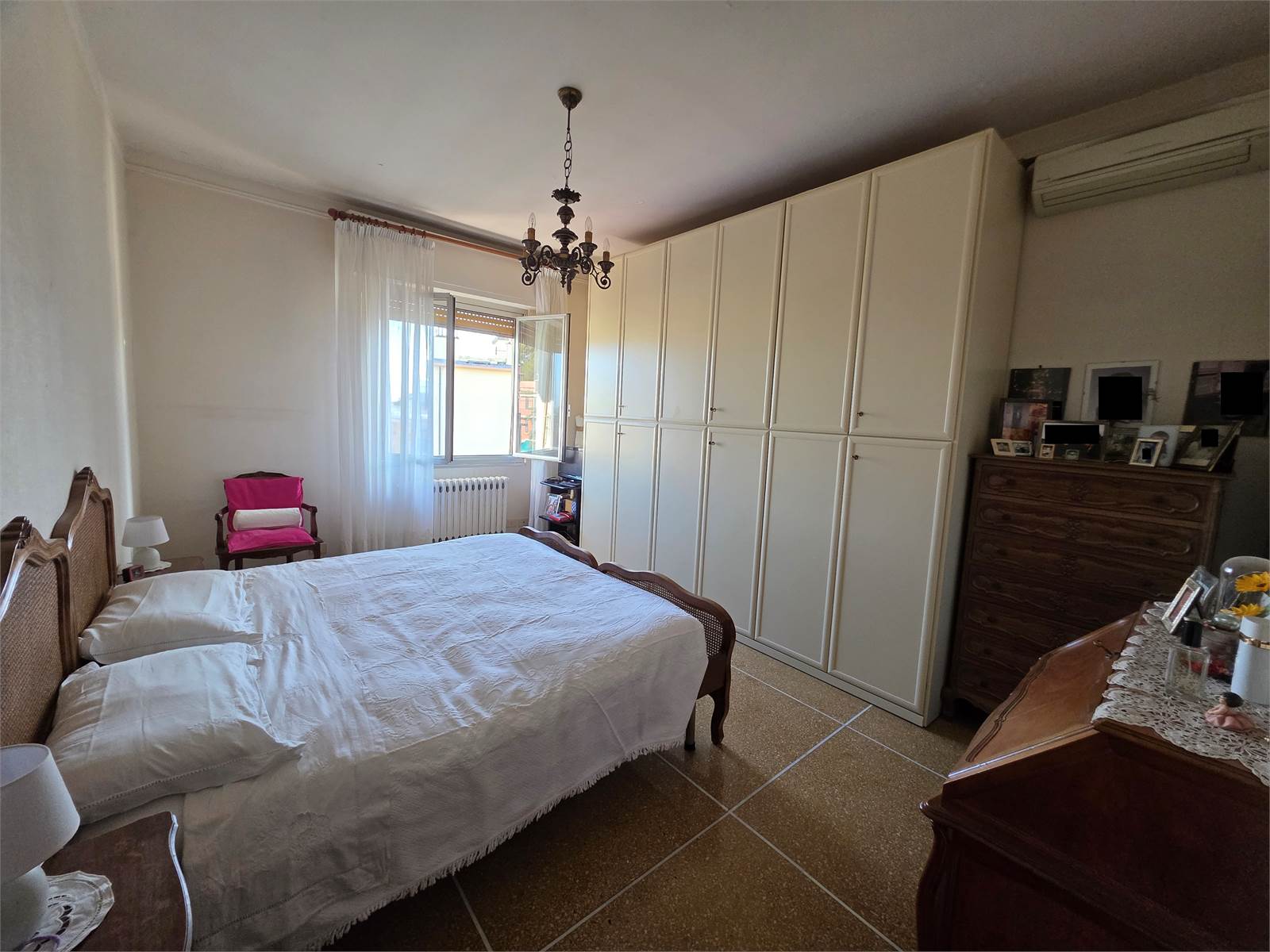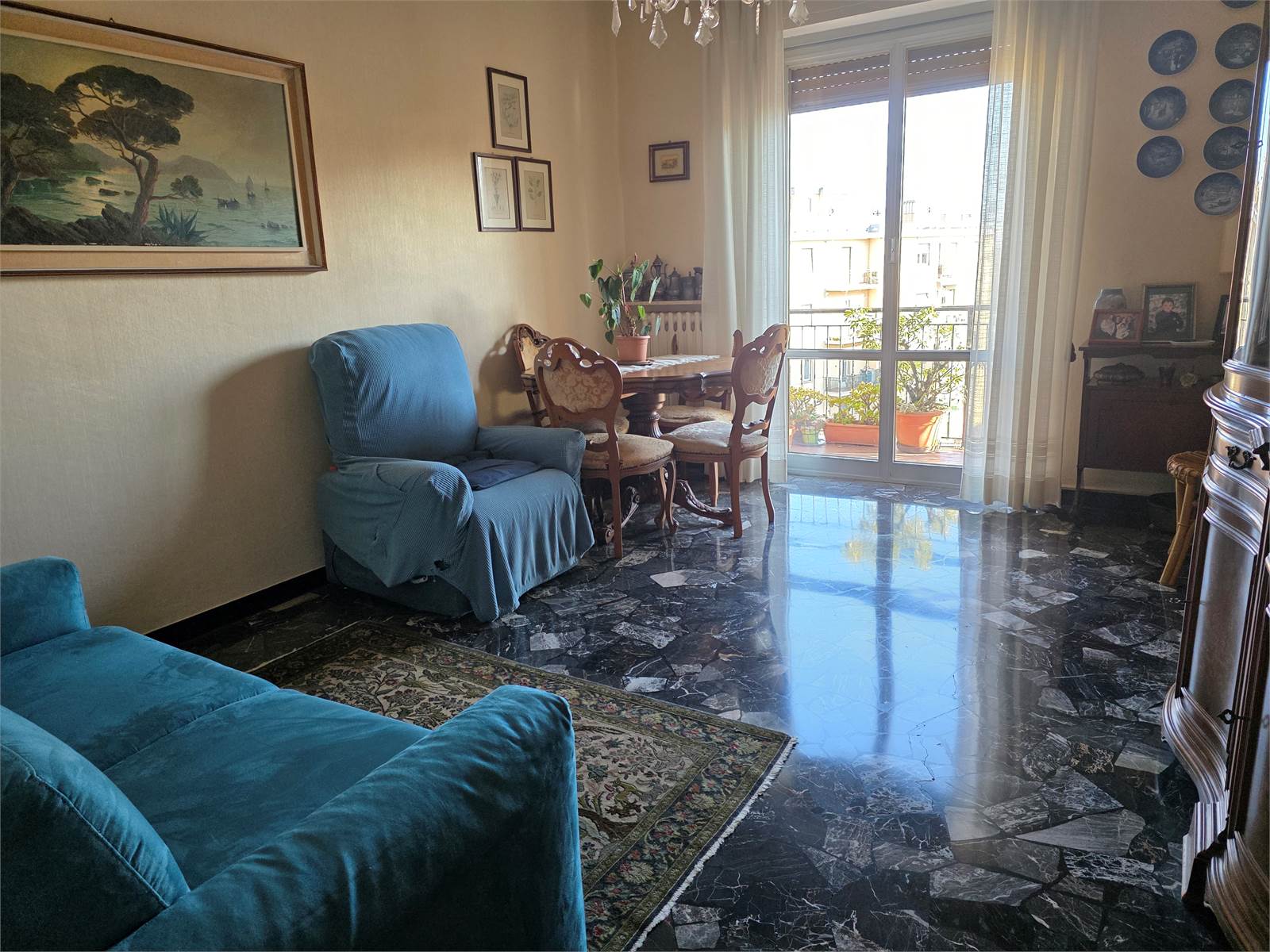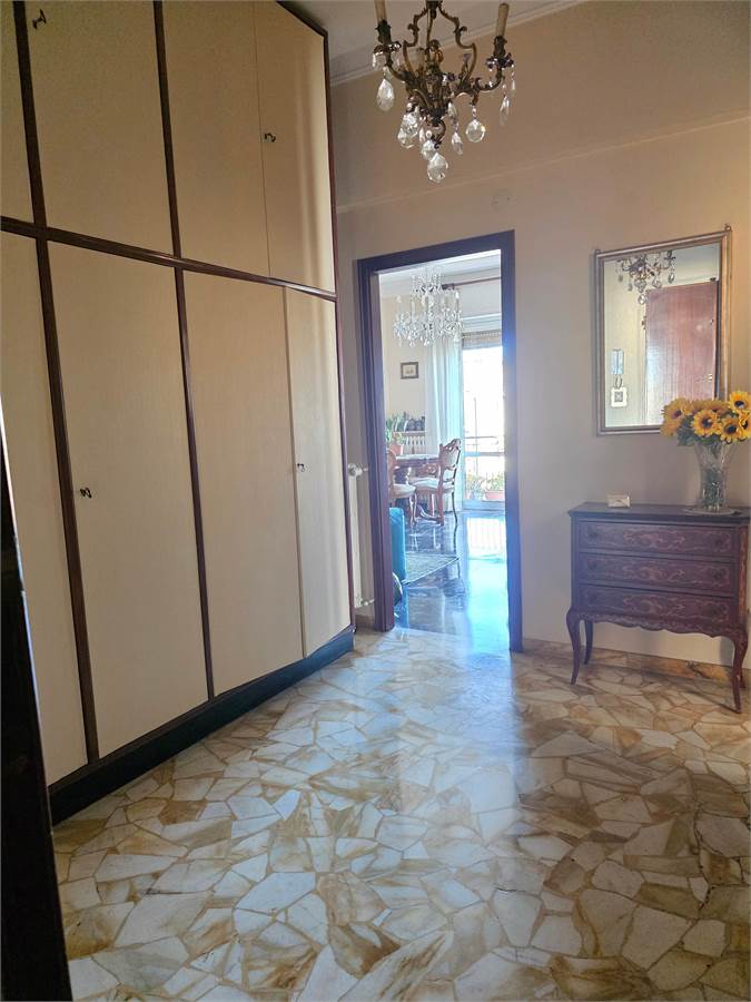 L'alloggio è composto da: ingresso, sala, due camere, cucina, bagno, dispensa e due balconi ed è dotato di: riscaldamento centralizzato, aria condizionata, pavimenti in marmo palladiano e graniglia, tapparelle rinforzate ed elettriche. Richiesta € 270.000.