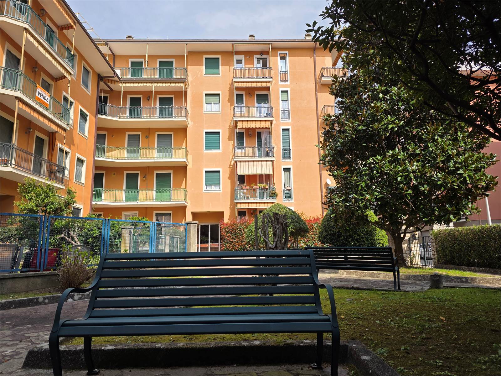 LAVAGNA - Via Legnano - In contesto privato con giardino condominiale, al secondo piano con ascensore, vendiamo appartamento di vani 6 composto da: ingresso, sala, due camere, cucina, bagno, grande dispensa (trasformabile in secondo bagno) e balcone vivibile.